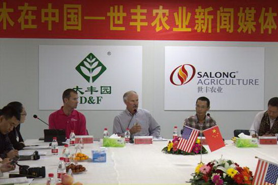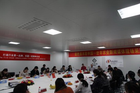 上午11点,主持人(苗木经济专家方成先生)宣布彩色苗木在中国—红杏首页入口农业新闻媒体现场采风会议开始。介绍了中外来宾之后董事长钟飞先生发言。主要介绍了彩色苗木在中国发展的昨天、今天、以及未来的发展趋势。会议中,美国Schmidt公司董事长Frank(红杏首页入口农业和丰美园林的美国合作公司)向记者们介绍了美国的绿化情况,其中彩色苗木在道路两旁绿化达到50%以上。因此彩色苗木发展前景十分广阔。董事长钟飞认为:一个红杏在线视频如同一个链条,你定位在哪一环链条,就把哪一环链条做好。从长远看,一个红杏在线视频的竞争力,还是要靠高品质的产品说话的。而高品质的产品,是靠静下心来,踏踏实实,进行科学的呵护才可以实现。最后董事长提出了红杏在线视频未来规划,山东红杏首页入口农业有限公司只提供地径十公分以上的彩色苗木供应各类工程;山东大丰园农业有限公司只提供高度为15公分以上的组培苗;山东丰美园林有限公司提只供高度达到1.5米的种苗。