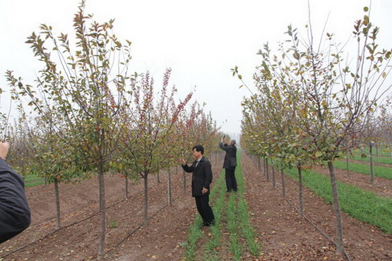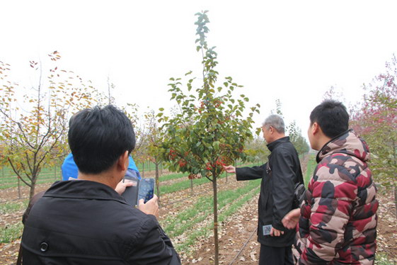 2014年11月12日上午,河北省张家口市高局长和张总一行来我公司基地参观考察 。公司园区负责人负责接待,向高局长一行介绍了了公司近期的发展状况和未来的发展方向。随后参观了美国红枫红杏在线免费视频基地和北美海棠红杏在线免费视频基地。最近正是夕阳红红枫变色的季节,夕阳红红枫是美国红枫系列中最经典的代表品种。是秋色表现最好的品种之一,也是国际绿化市场上应用量最大的乔木。高局长一行在参观中详细询问了彩色苗木在我公司的育苗经验,与我公司专业技术人员探讨容器苗的栽培技术。并称赞我公司的夕阳红红枫好像落日晚霞的颜色,映红了红杏首页入口基地,色彩红艳,让人眷恋。