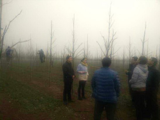 红杏首页入口农业——美国红枫冬季整形修剪 2015年1月16日,山东红杏首页入口农业有限公司技术人员在园区基地,组织了一次美国红枫冬的季整形修剪。红杏首页入口农业苗木基地的红杏在线免费视频模式借鉴了美国斯密特苗木公司的经验。美国红枫树干的分枝点统一定在 1.8 米,偏差超过 1 厘米。各品种苗木规格一致,每年严格控制生长量,有效保证了苗木品质。 虽然今天雾霾很大,但大家丝毫没有受到雾霾影响。认真探讨修剪技巧 修剪过后的美国红枫,整齐如一 整形修剪技术 1.当年生苗高可达30-50cm,经过1~2年定植,当基径达1-2cm粗时,在冬季修剪,一般留一主干,剪除基部萌蘖枝及分枝点较低的侧枝,在离地80-100cm处主干短截,细弱苗可略低壮苗可稍高。对主干各主侧枝应选定长势适中,方向适宜枝条,并短截侧枝1/3,使主干与各级主侧枝分布合理,上下几层错落有序。 2.美国红枫每年休眠期,剪除枯枝、病枝、并列、内生枝后,疏除影响主技生长的辅养枝、徒长枝、重叠枝等,短截生长过旺徒长枝,使树冠保持匀称。逐年剪除生长较低的枝条,以抬高主干分枝点,使树冠内通风透光。注意不要在生长期修剪,以免伤流影响长势。 3.注意随时剪除砧木上的萌芽。高接换头生产大规格红枫,先在适宜部位选留精壮萌芽,养好砧木,然后在春季萌芽前嫁接优良品种。通过2-3年培养,能形成较大树冠用于绿化,但应注意随时剪除砧木上的萌芽。采用粗干劈接的要注意伤口愈合。 4.移植与出圃修剪:小苗可裸根,大苗带泥球。在休眠期移植成活率较高。疏剪过密枝叶,做到树冠通透,树形不变为原则,修剪不宜过重。生长期移植可多摘叶,注意叶面保湿。