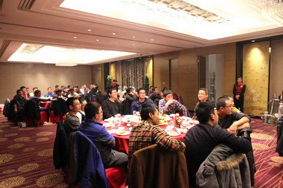 下午6点,会议结束,年会晚宴开始。现场充满了激情、热烈、活跃的气氛。更有大奖期待,公司奖品,除了特等奖一万元旅游基金外,全部都是苹果产品,并保证人人有奖,抽奖环节更是将晚宴气氛推向高潮。