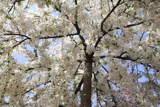 每到四月,就成了海棠的主场,海棠花淡雅而洒脱,开时浓艳,随之色浅,初绽时娇艳朵朵,怒放时绚丽片片,花落时缤纷片片。