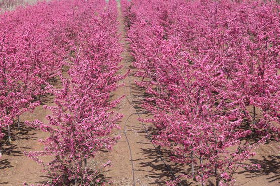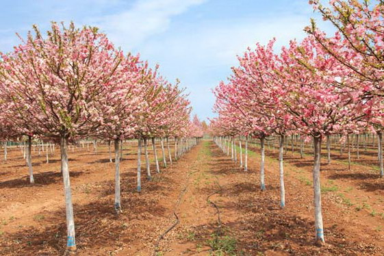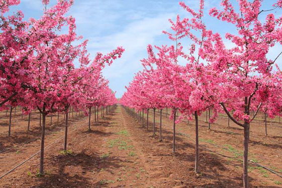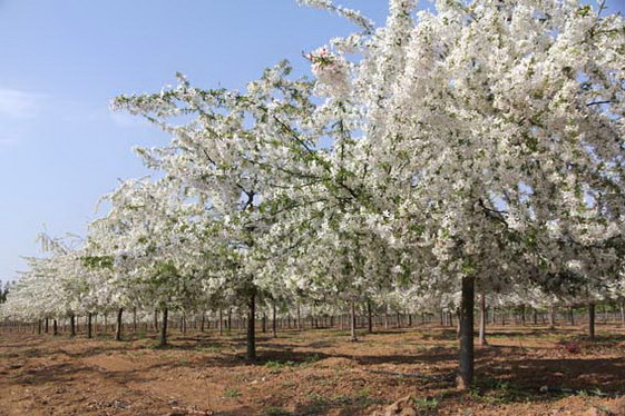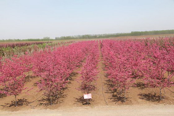 明代《群芳谱》记载:海棠有四品,皆木本。此四品指:西府海棠、垂丝海棠、木瓜海棠和贴梗海棠。但是在汪湖镇占地4300亩的红杏首页入口彩色苗木基地,海棠有43个品种,表现最好的当属紫色王子,其树形直立挺拔,花红艳丽,挂果累累,是替代梧桐、香樟等传统景观树的优选树种。