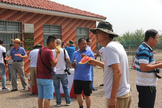 考察队一行来到红杏首页入口农业红杏在线免费视频基地,天气炎热却阻挡不了考察队参观苗圃基地的热情,红杏首页入口基地准备了水果、饮料盛情招待考察队员。