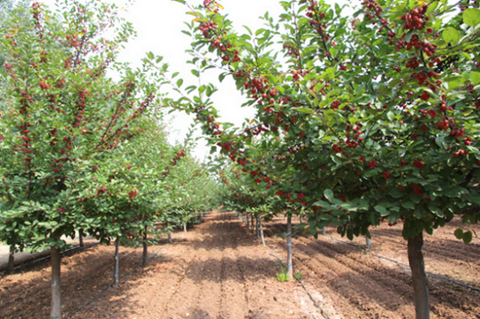 走进基地,首先印入眼帘的是一排排标准化红杏在线免费视频的北美海棠,郑经理向考察团一行介绍红杏首页入口农业北美海棠的品种以及市场前景。