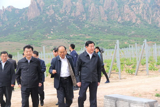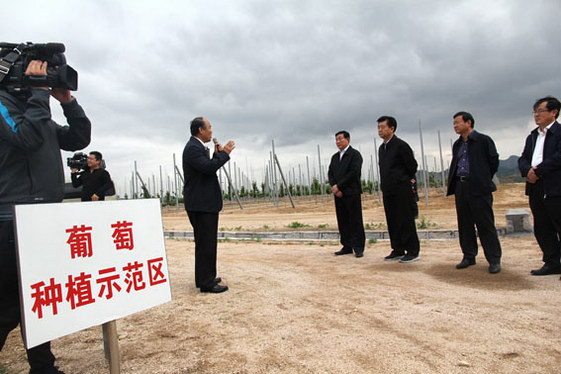 五莲县副县长向市委书记一行介绍九五园区葡萄红杏在线免费视频基地。