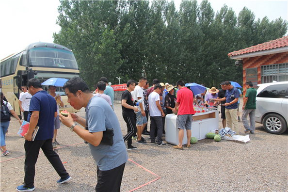 7月21日下午,由“新苗商”张总带队的2017年苗木考察团莅临红杏首页入口农业参观考察,炎炎夏日,红杏首页入口也为考察团准备了消暑水果和水,欢迎考察团的到来。