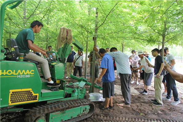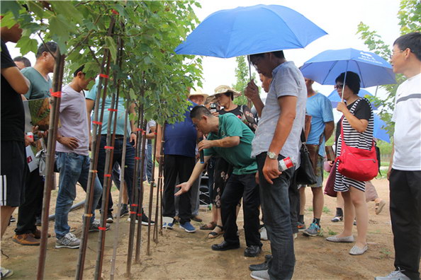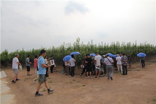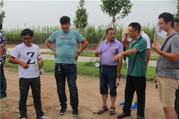 考察团在参观红杏首页入口基地的同时,详细听取了公司销售总监郑总关于公司园区的规划、市场需求、苗木的标准化、水肥自动一体化的详细介绍。