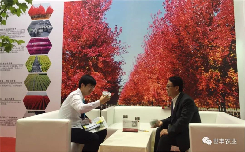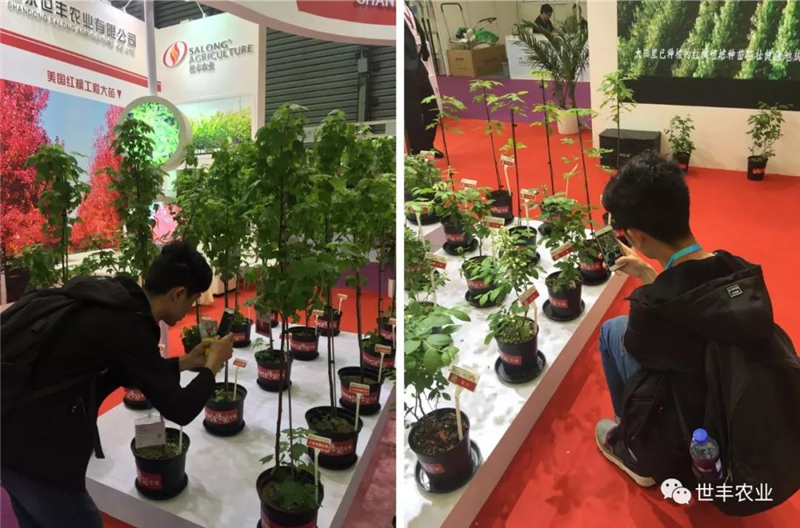 二年生优质美国红枫组培种苗在展位上火爆现场,其根系发达、植株健壮、长势旺盛、变色艳丽统一的特点,更受观众们的关注